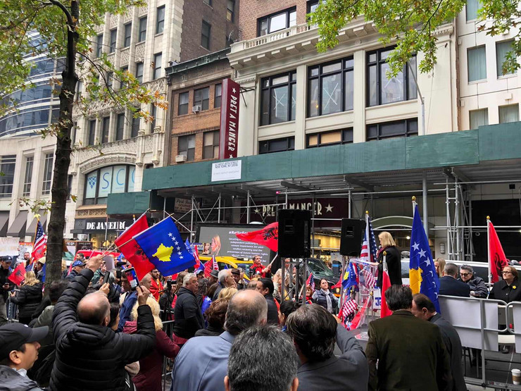 Protest je trajao sat vremena, a vodio ga je njujorški albanski odbornik Mark Djonaj, koji je dan ranije pozvao sve Albance u Americi da se pridruže skupu.