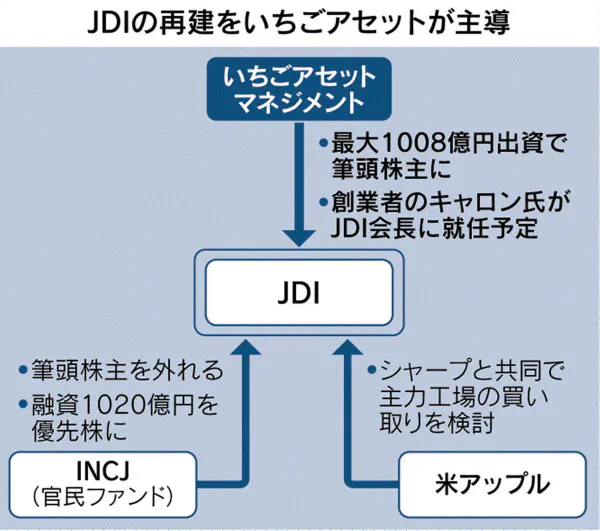 いちごのスコット・キャロン社長は同日の記者会見で「JDIは世界一の技術を持ち、再建は意義がある。(いちごの投資家にもJDIに出資する)勝算を説明し、納得してもらった」と述べた。キャロン氏はJDIの会長に就任する予定だ。