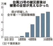 19年の台風15号(房総半島台風)では、県が被害の大きさに気づくのが遅れ、初動対応が後手に回った。被災当日に県が把握した住宅損害被害が190棟だったのに対し、4週間後には3万4165棟に拡大した。最終報告は、18年に大阪府を襲った台風21号でも同様の傾向がみられたことをデータで指摘。過去の災害の教訓が生かされなかったことを改めて浮き彫りにした。