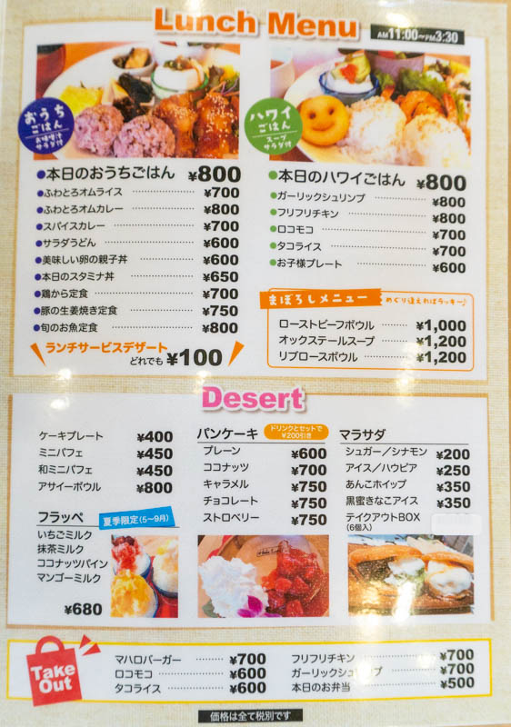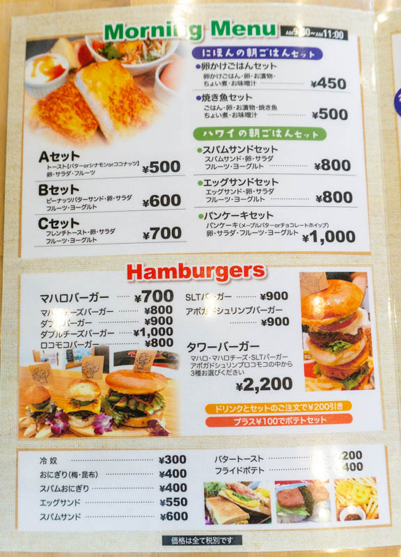 ハワイアンなメニューも残しつつ、日本のごはんメニューもたくさん選べるようになっています。