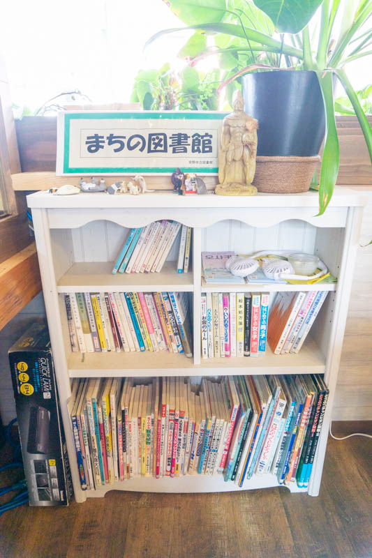 「まちの図書館」という交野市の図書館の古い蔵書を貸し出しカード無しで自由に借りられるコーナーも。