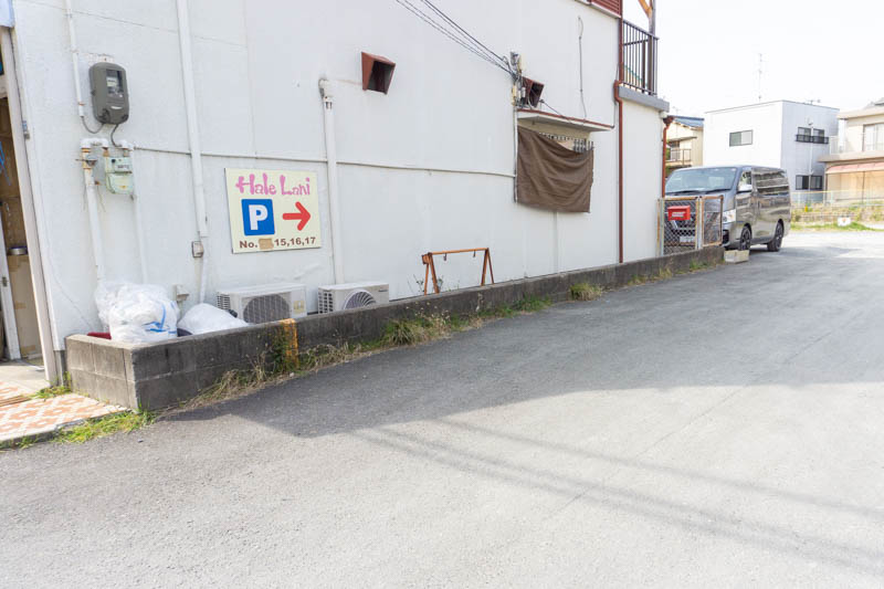 駐車場はお店の裏に3台と、この郡津駅方面に少し進むと専用駐車場がもう3台分あります。