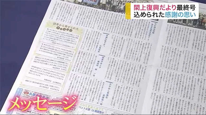 最終号には、閖上復興だよりの終刊を聞いた読者などから寄せられたメッセージが掲載されている。