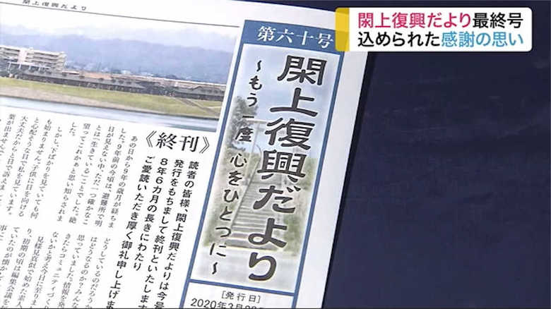 東日本大震災で被災した、宮城県名取市閖上の地域情報誌「閖上復興だより」。3月発行の第60号・最終号が完成した。8年半、閖上に住んでいた方々に向けて、同じ閖上の住民が復興状況などを伝えてきた。この最終号には、感謝の思いが詰まっている。