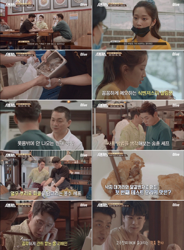 이날 방송에서는 남겨진 식자재를 '제로'로 만들기 위한 셰프들의 신메뉴와 식자재 활용법이 화제를 모았다. 초지일관 진중한 태도로 고민하던 맏형 유방원 셰프는 머랭 만두를 선보였다. 계란 흰자로 쳐낸 머랭에 낙지 머리를 다져 만든 속을 채워 만두를 만든 것. 육즙 가득한 풍미부터 겉바속촉 식감까지 다 잡은 맛에 출연진 모두가 환호했다. 송훈 셰프는 껍질을 갈고 낙지 머리를 삶아 상큼한 전채 요리를 개발했다. 뿐만 아니라 파 뿌리와 양파껍질로 셰프들의 최애템 파기름을 만드는 등 자투리 식자재를 남김없이 활용하는 모습으로 '식벤져스'의 저력을 여실히 보여줬다.