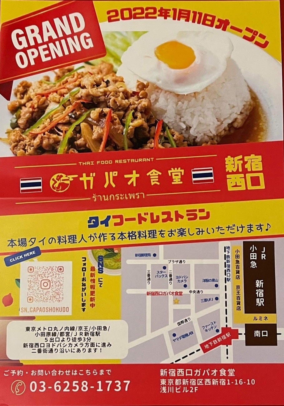 100年に一度の世界的パンデミックを乗り越えようとしている今、「みんなで少しでも元気に」、そして「街に少しずつでも活気を」という強い想いと希望を詰め込み、2022年1月、新宿西口ガパオ食堂はオープンしました。