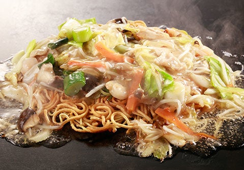 どんどん亭の隠れたスター商品である焼きそばともんじゃ焼きには、長崎県産のあご出汁を使用しています。お肉と野菜の旨みに魚介の出汁も加わることで、風味に奥行きが増し、複雑な味わいが楽しめます。