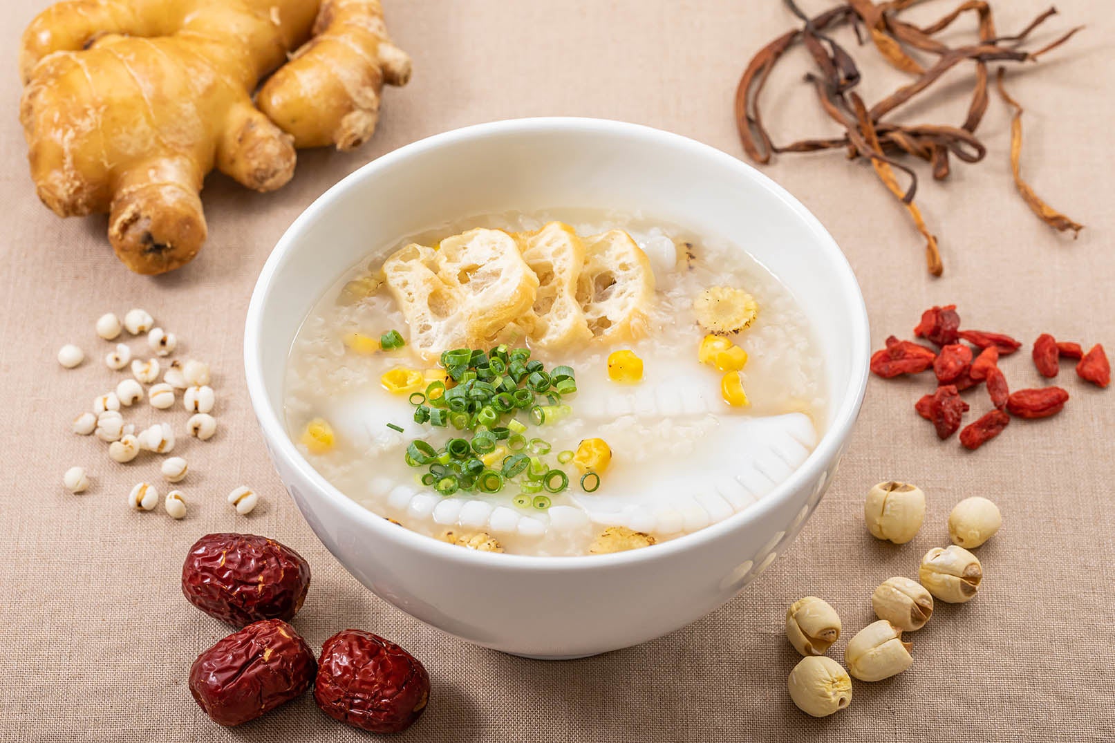 丸鶏、牡蠣、干し貝柱、昆布、煮干しなどの旨味が凝縮された薬膳スープ粥です!