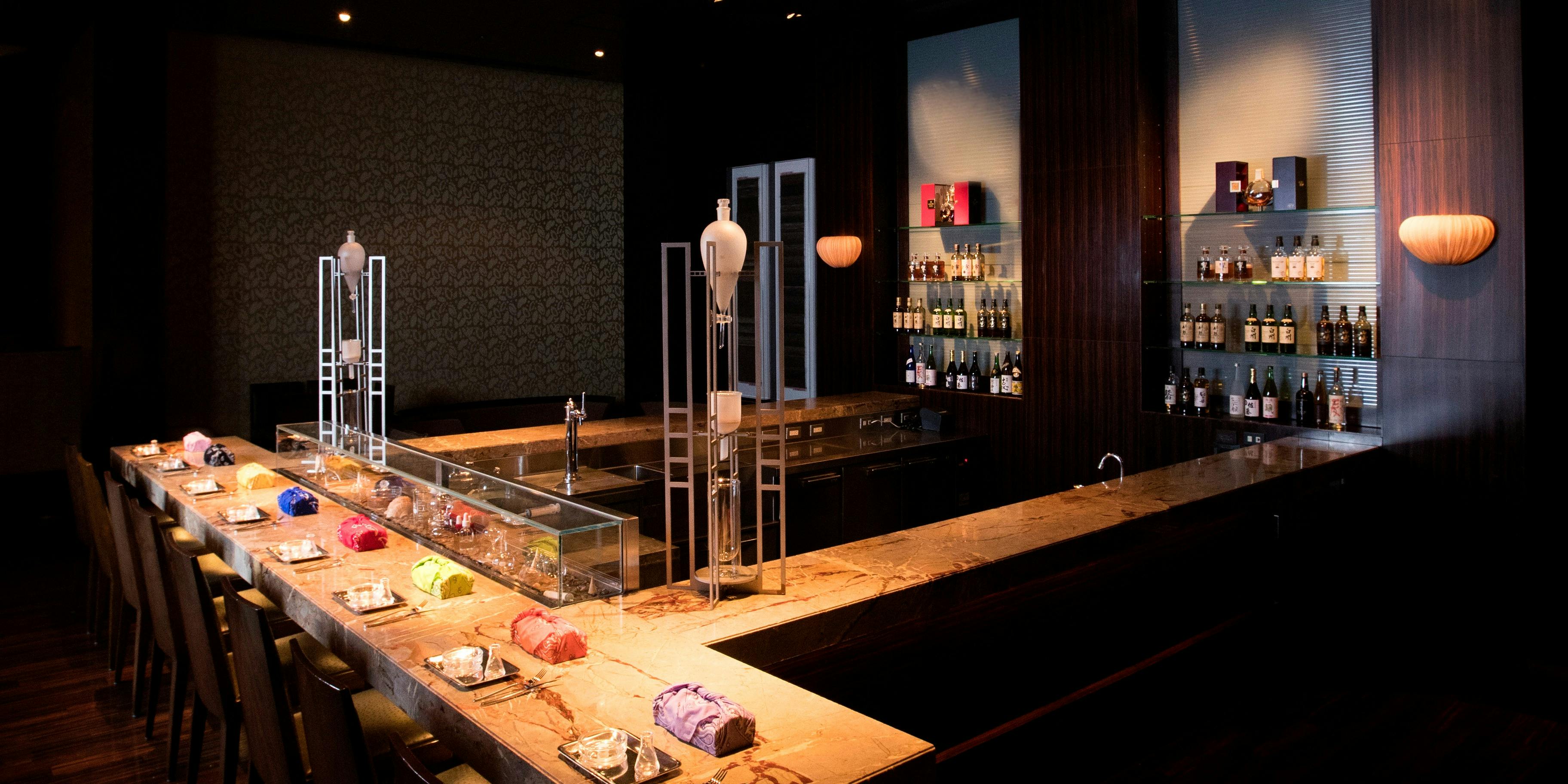 「タパス モラキュラーバー」は東京メトロ銀座線・半蔵門線「三越前駅」A7出口直結のホテル、マンダリンオリエンタル東京内にあるレストラン。カウンター席でコースが提供され、"エンターテイメントとしても楽しめるスタイル"が人気の理由の一つです。さまざまな食材や調理法を使って五感を刺激される珍しいコースを楽しんでみては。