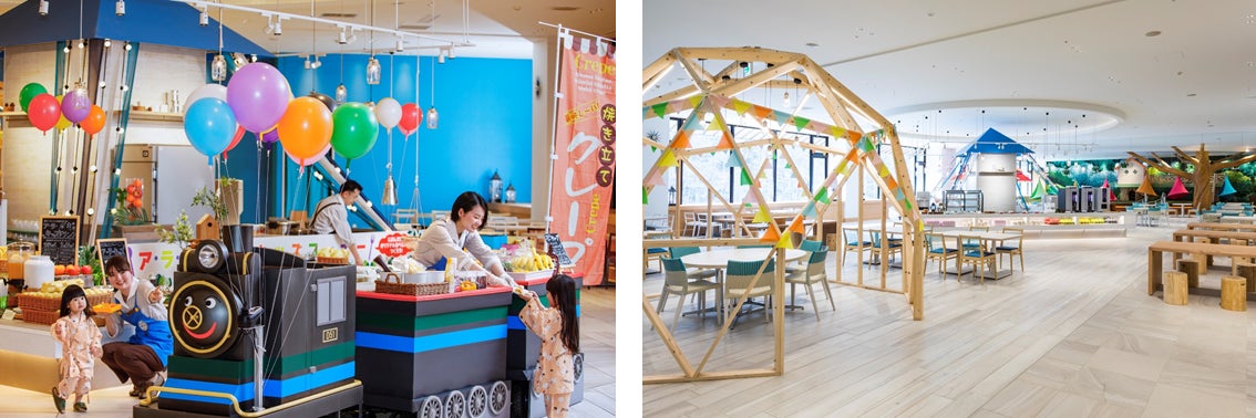 また、レストラン「ア・ラ・ソーヤ」は、アメリカの作家マーク・トゥエインの「トム・ソーヤの冒険」の世界観をモチーフに、料理を運ぶ機関車トムやツリーハウス、ハンモックなどを設けた、お子様が楽しく食事できる遊園地のような会場です。