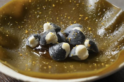 例えば薄くスライスされたタケノコが透明なだしに浮かぶ一皿。一見シンプルだが、タケノコは薫製したトウモロコシと一緒に炊き、裏にはトウモロコシのペーストも塗っている。だしはヤリイカで取り、こうじのオイルやジャスミンを加えたもの。口に含むとだしの華やかな香りやうまみ、トウモロコシの香ばしさ、タケノコのフレッシュな食感と香りが一体となって広がる。「デンマークから来た私たちが京都の季節や懐石の歴史を学ぶ。そうしてこそ生まれうるものを作りたい」とオーナーシェフのレネ・レゼピさんは言う。