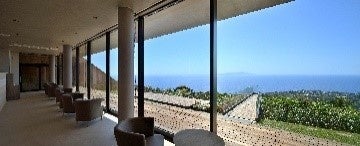 全席オーシャン&スカイビュー。山頂の起伏を活かした造りとなっています。優しい色合いの店内や、カフェ利用者限定のデッキスペースでお寛ぎいただけます。