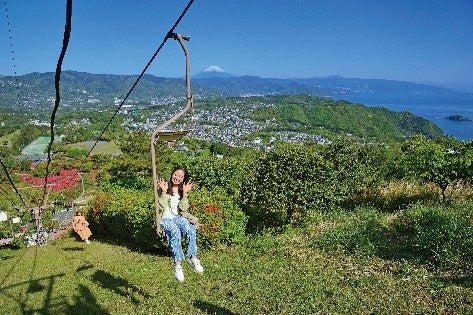 2021年4月、山頂にオープン後、伊豆の新たなランドマークになっているビュースポット。温暖な気候で一年を通し季節の花々が咲く山麓から専用リフトに乗り約5分で到着します。木製のボードウォークからは360°遮るもののない開放感を味わえます。
