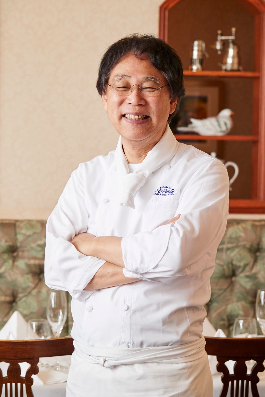 1948年生まれ。1968年、日本領事館の総領事付き料理人としてイタリア・ミラノに渡る。出発までの間は、「つきぢ田村」で日本料理を研修。イタリアでは、各地の名店に通い料理修行に励む。