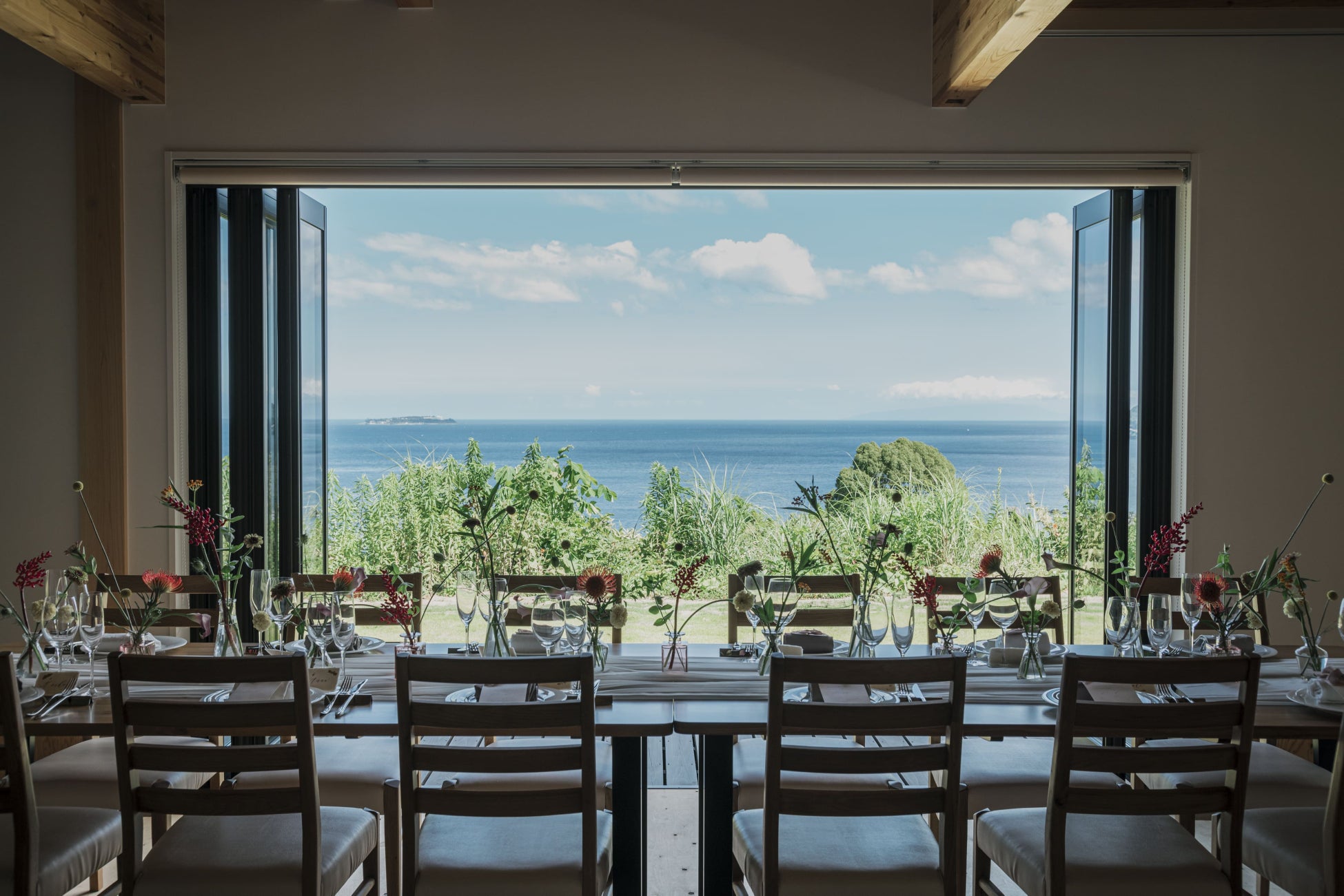 レストランは海抜75mの、相模湾を一望できる小高い丘に位置しています。また、館内には国内外で活躍するアーティストのアートも展示。絶景×アートな空間で、最高の一皿をお楽しみください。